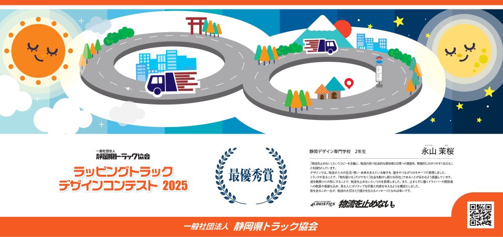 静岡県トラック協会では2025年4月1日~8月8日にかけて、トラック運送業界のイメージアップに繋げることを目的として、静岡県内大学・短期大学・専門学校の学生の皆様を対象に[ラッピングトラックデザインコンテスト2025]を実施いたしました。